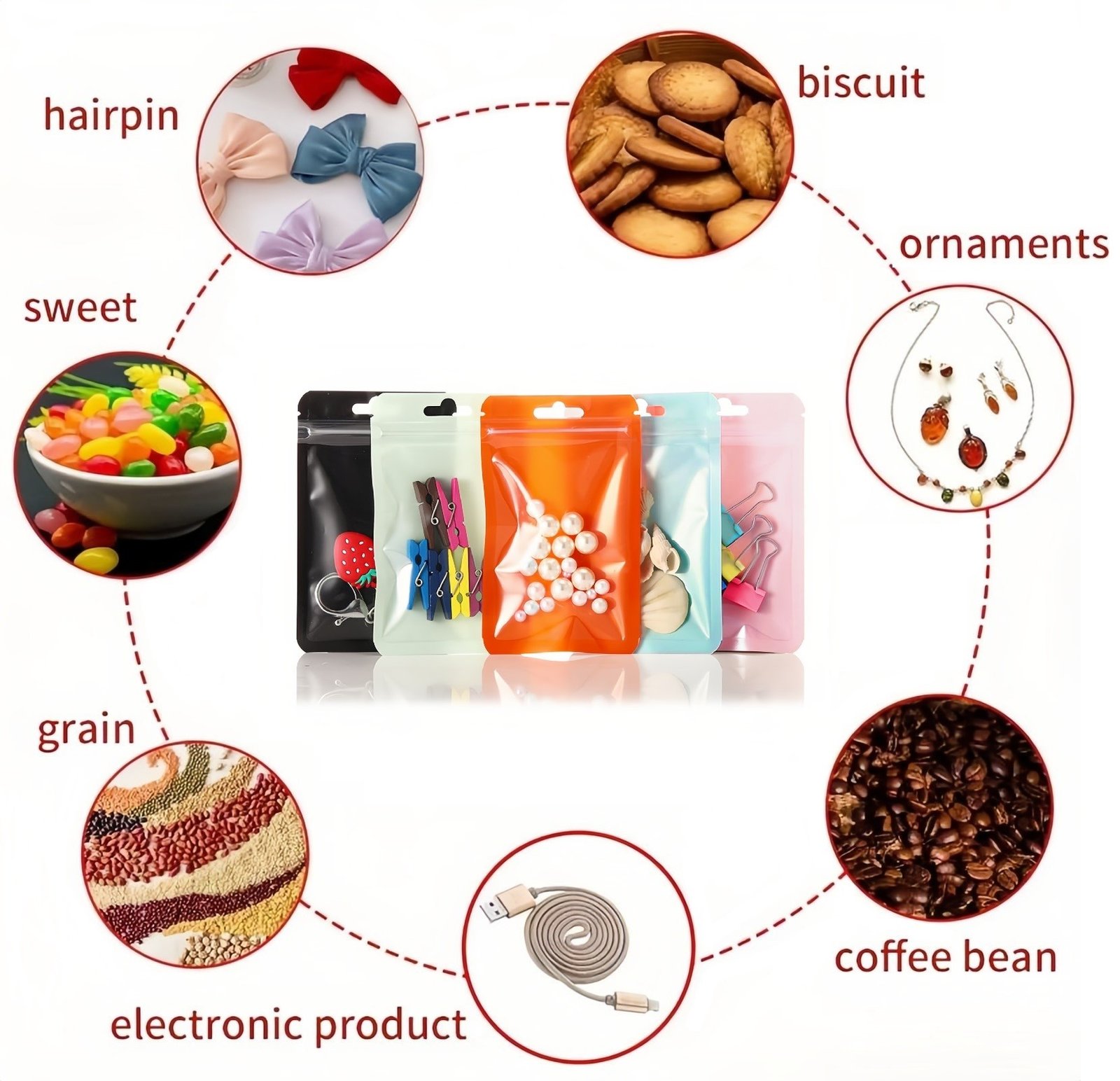 Ces sachets zip réutilisables sont très pratiques. Vous pouvez les utiliser pour conserver du café, du thé, des bonbons, des épices et des échantillons. Ils conviennent aussi aux fruits secs, céréales et croquettes. De plus, ils sont utiles pour stocker des bijoux, accessoires, ou coques de téléphone. Enfin, ils permettent d’organiser des échantillons, produits de beauté ou objets de voyage.