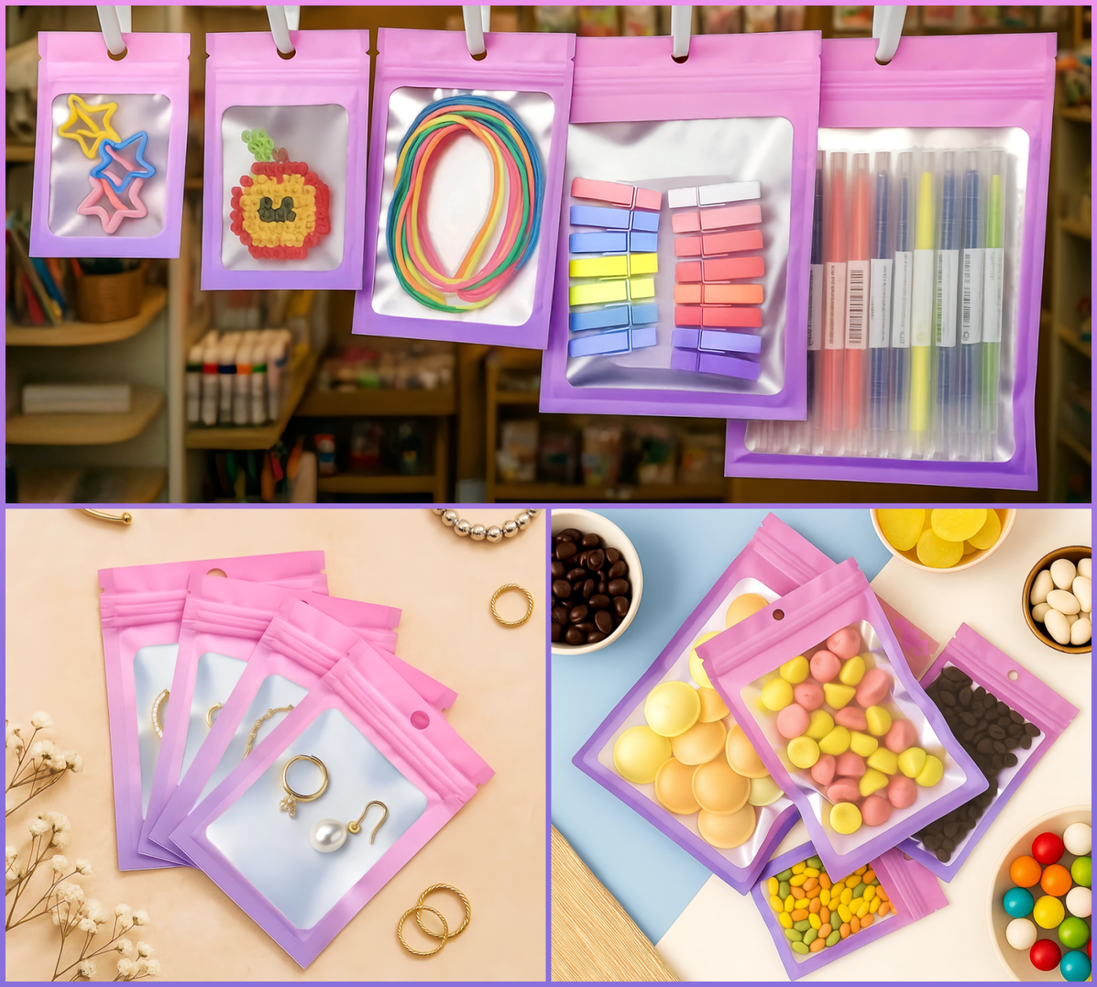 Ces sachets zip réutilisables sont très pratiques. Vous pouvez les utiliser pour conserver du café, du thé, des bonbons, des épices et des échantillons. Ils conviennent aussi aux fruits secs, céréales et croquettes. De plus, ils sont utiles pour stocker des bijoux, accessoires, ou coques de téléphone. Enfin, ils permettent d’organiser des échantillons, produits de beauté ou objets de voyage.