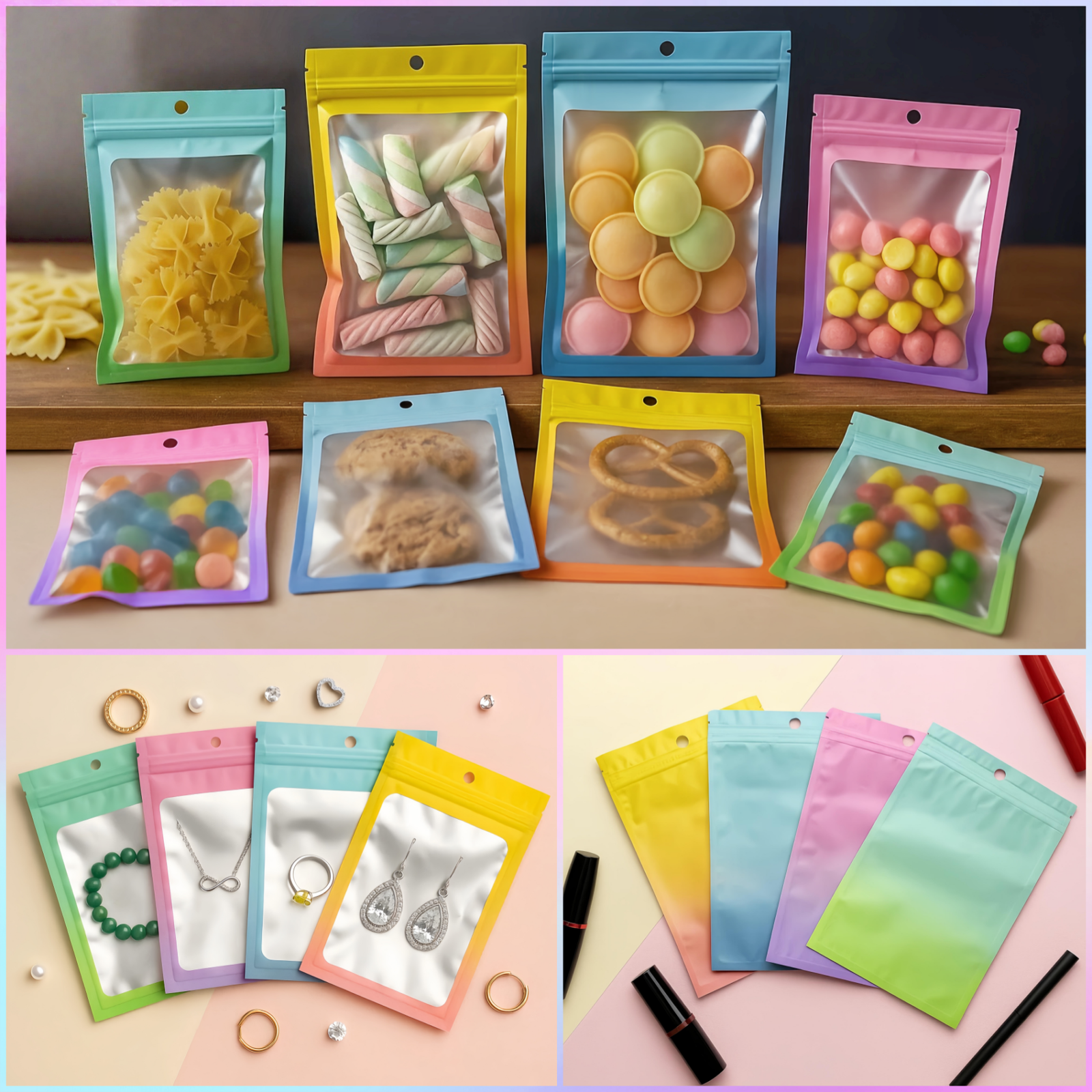 Chaque sachet présente une face opaque colorée dégradées, idéale pour protéger de la lumière. L’autre face transparente permet d’identifier le contenu sans l’ouvrir. Réutilisables après lavage, ils offrent une solution pratique pour le stockage.