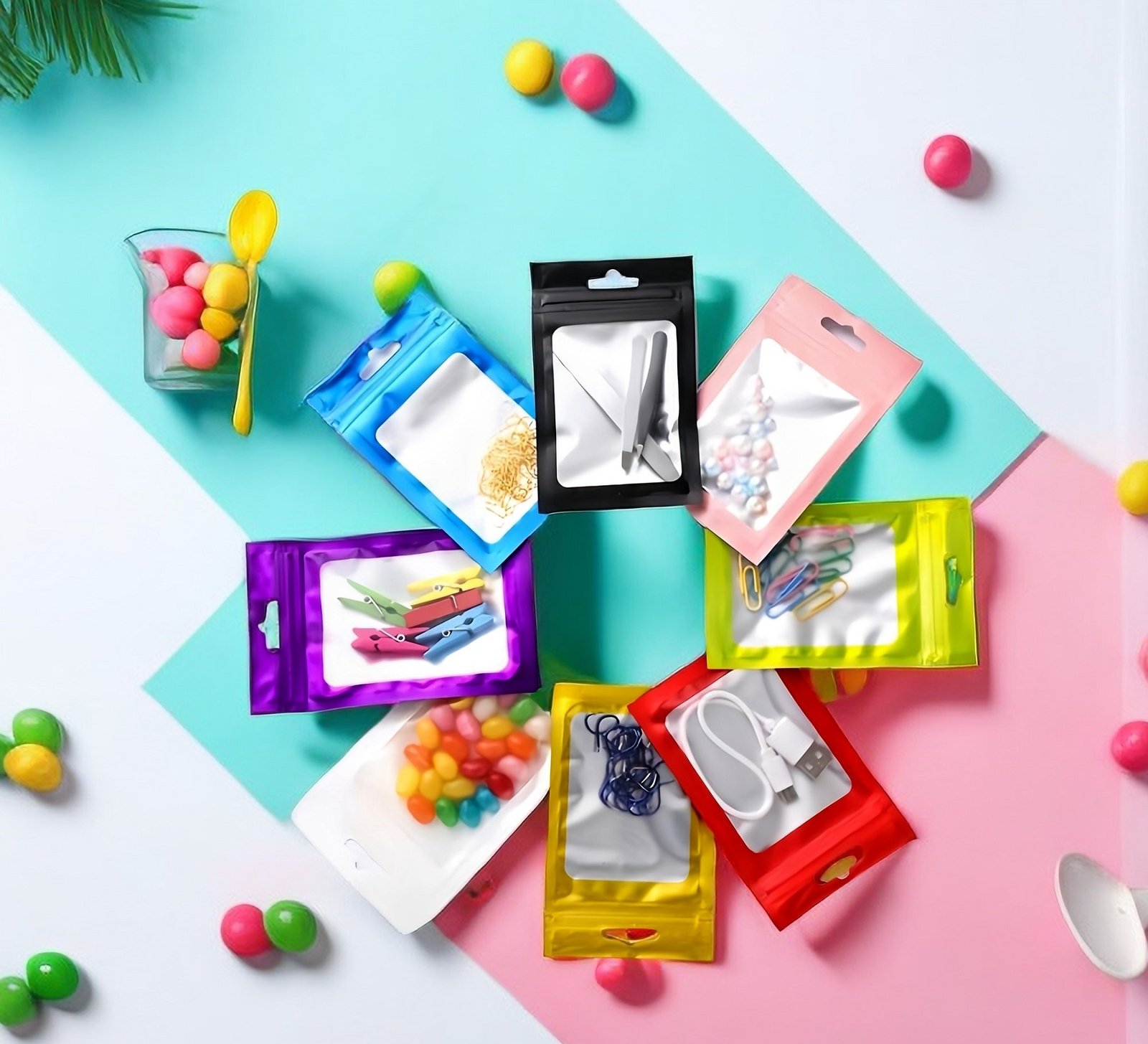 Chaque petit sachet plastique zip protège de la lumière sur une face avec belle couleur, et l’autre face du pochon permet de voir facilement le produit sans ouvrir le pochon. Il est refermable et réutilisable après un simple lavage. Il est parfait pour ranger et classifier toutes sortes d’articles.
