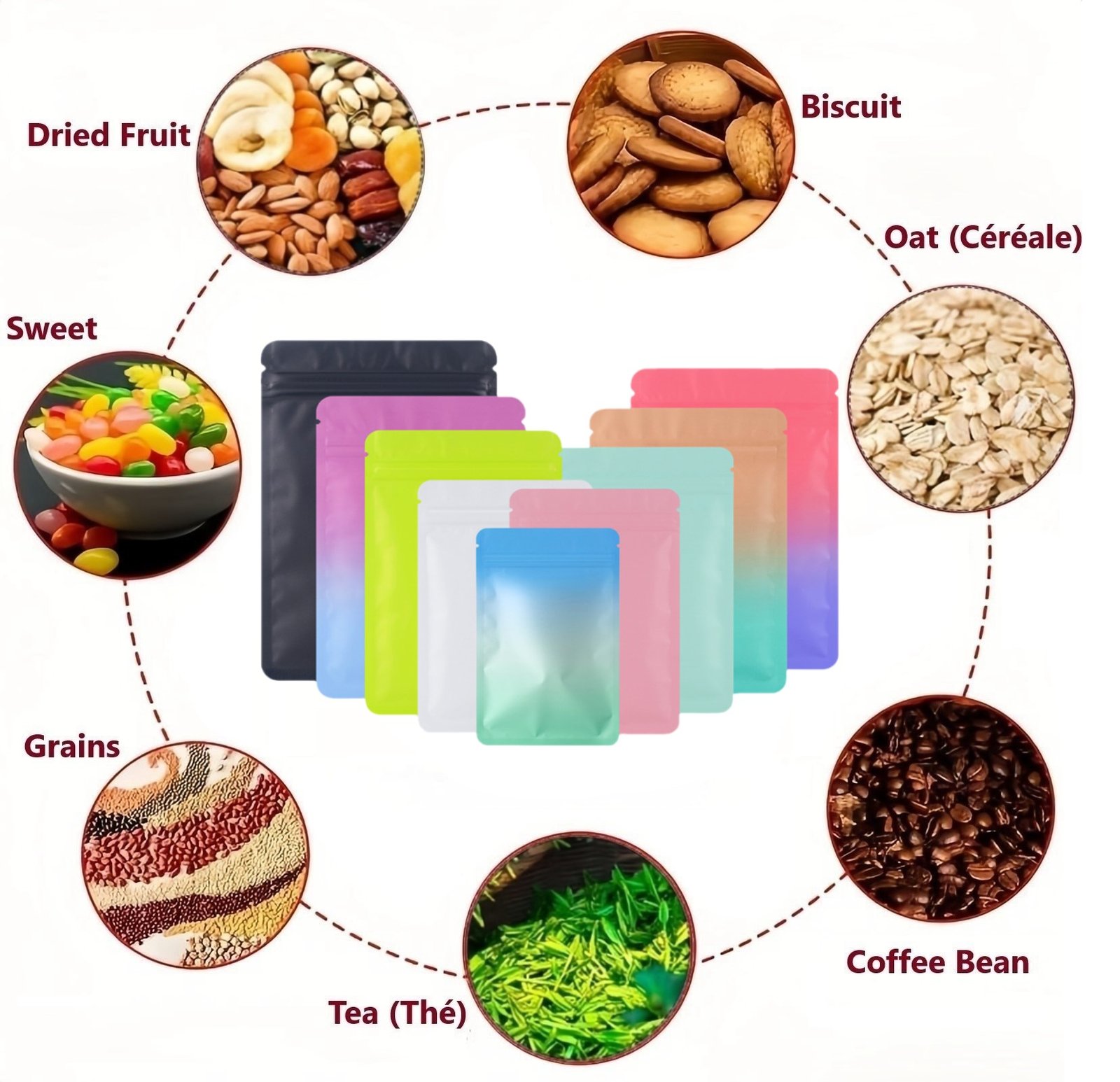 Idéal pour le stockage, l’emballage, le transport, l’échantillonnage ou le tri, ce pochon zip s’adapte à tous vos besoins. Vous pouvez y conserver fruits secs, grains de café, épices, bonbons, biscuits, thé, noix, céréales, aliments pour animaux, assaisonnements, bijoux, cosmétiques, échantillons, etc.