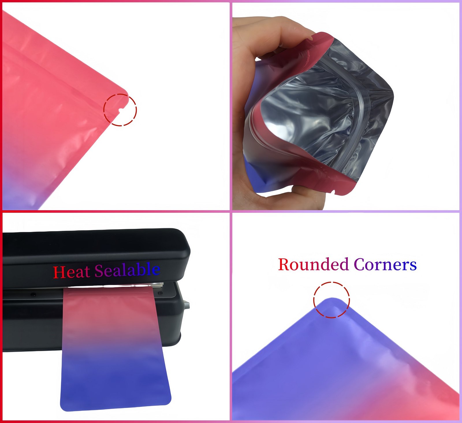Chaque sachet échantillon en aluminium protège son contenu de la lumière grâce à sa double face opaque et sa belle couleur mate et dégradée. Chaque pochon zip est refermable et réutilisable après un simple lavage. Son design le rend parfait pour ranger et organiser divers articles.