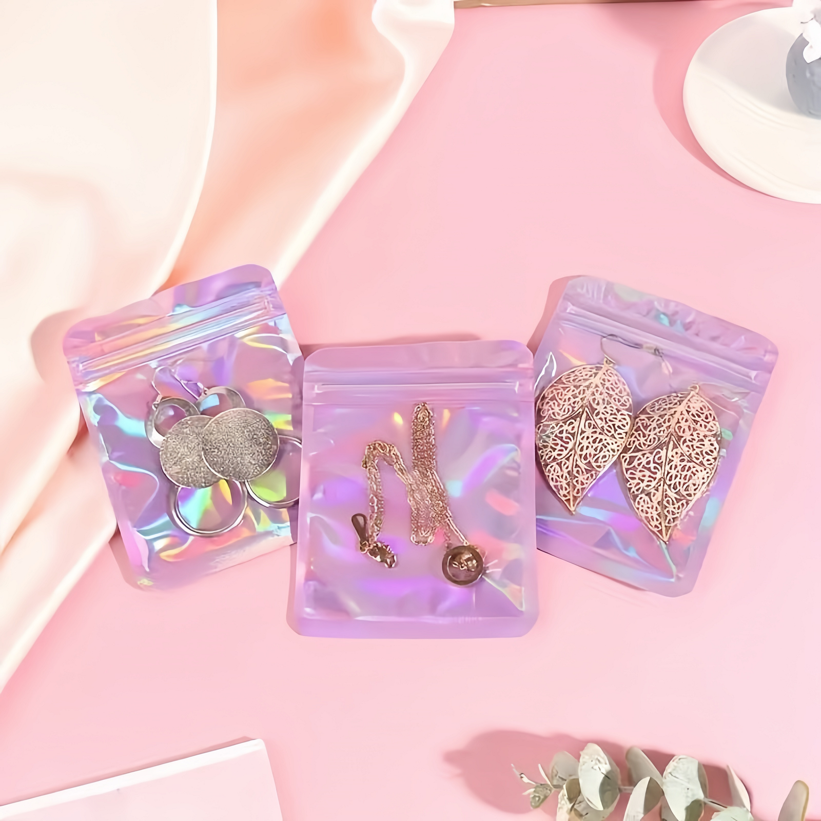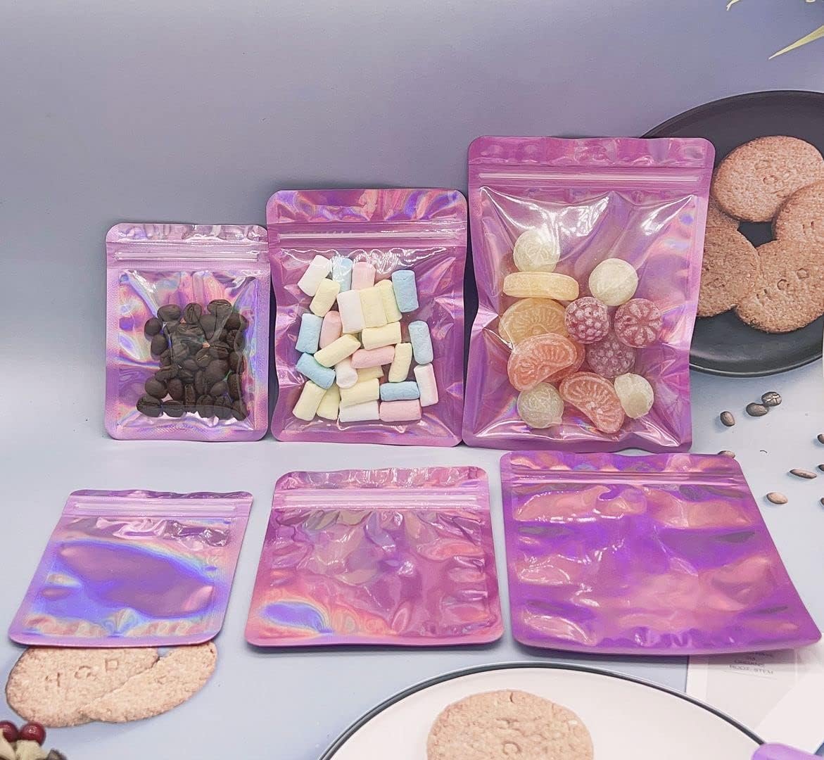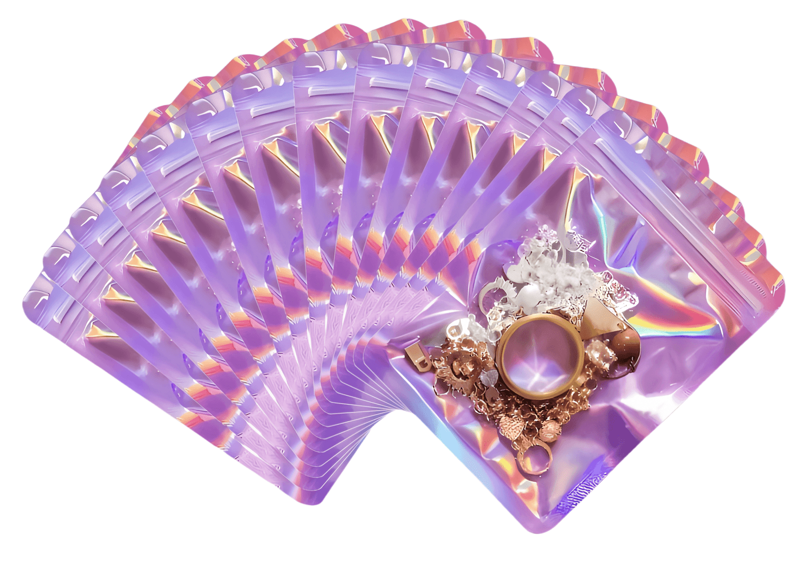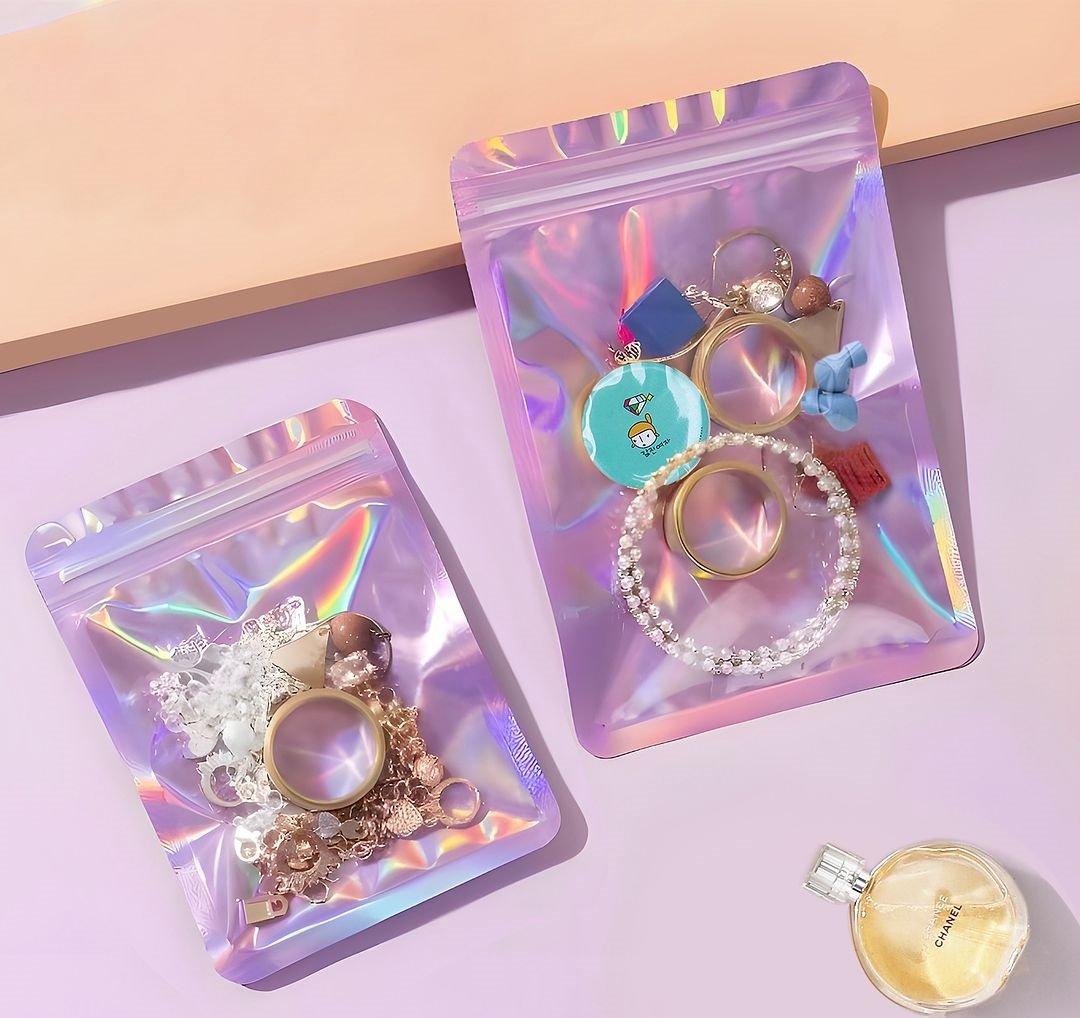 Nos sachets zip holographiques roses représentent une solution de conditionnement à la fois pratique, durable et esthétique.