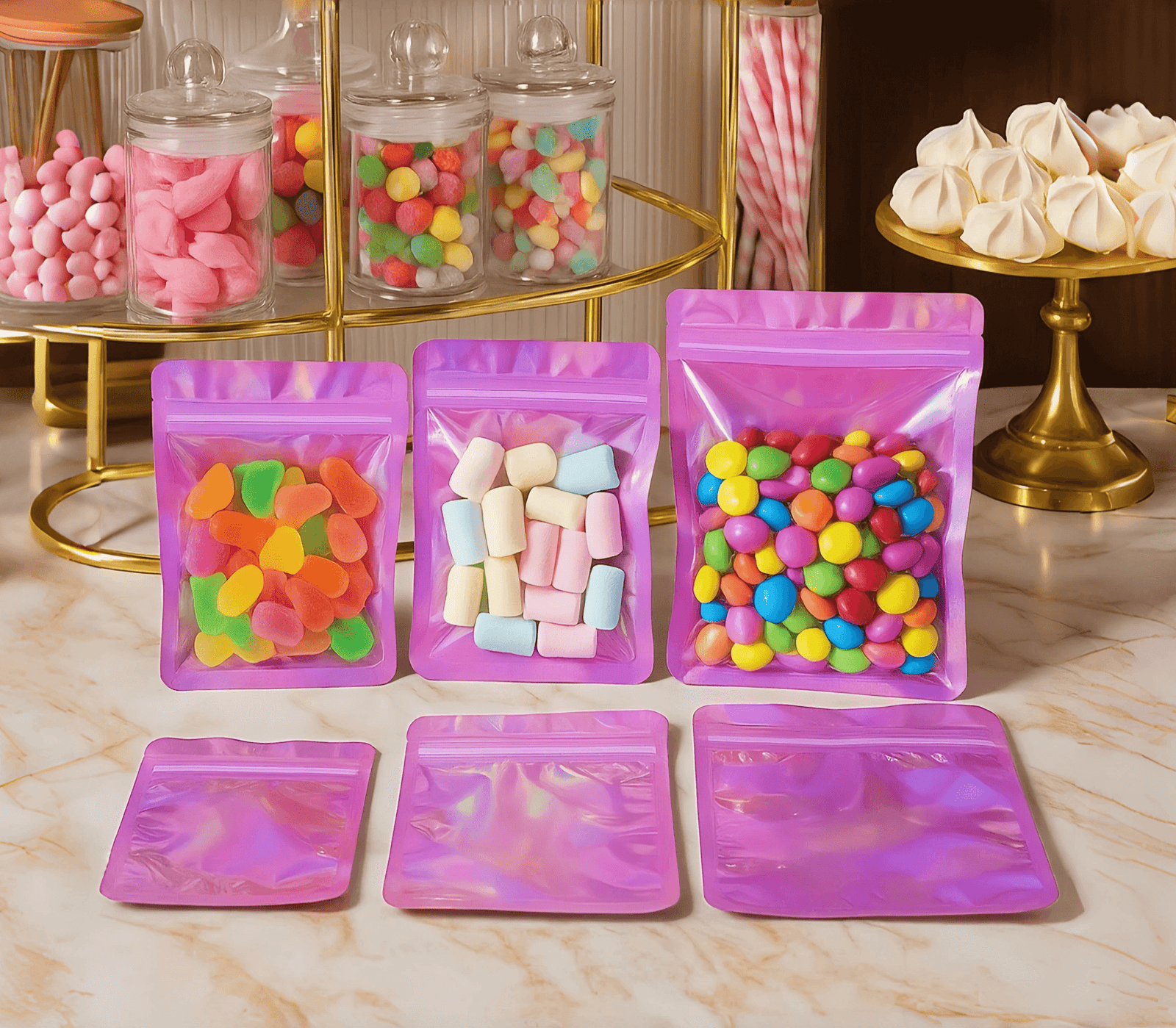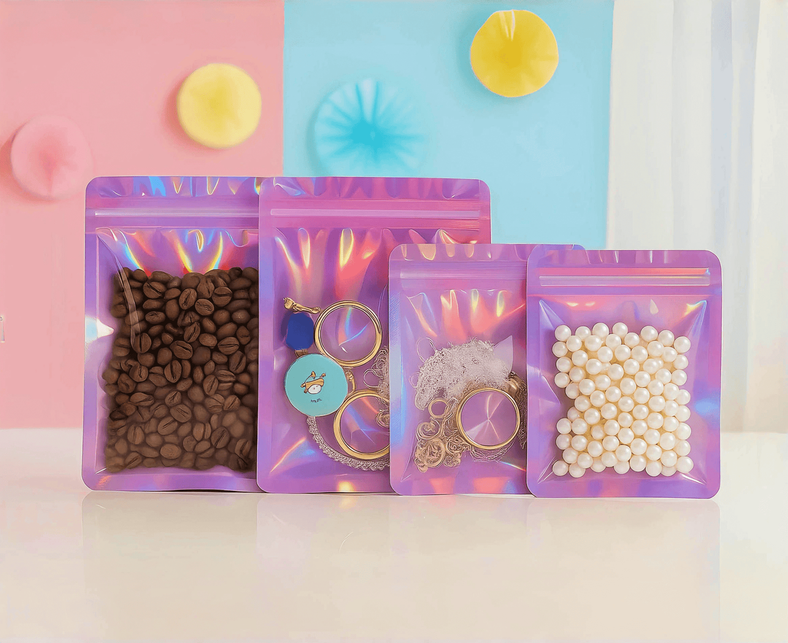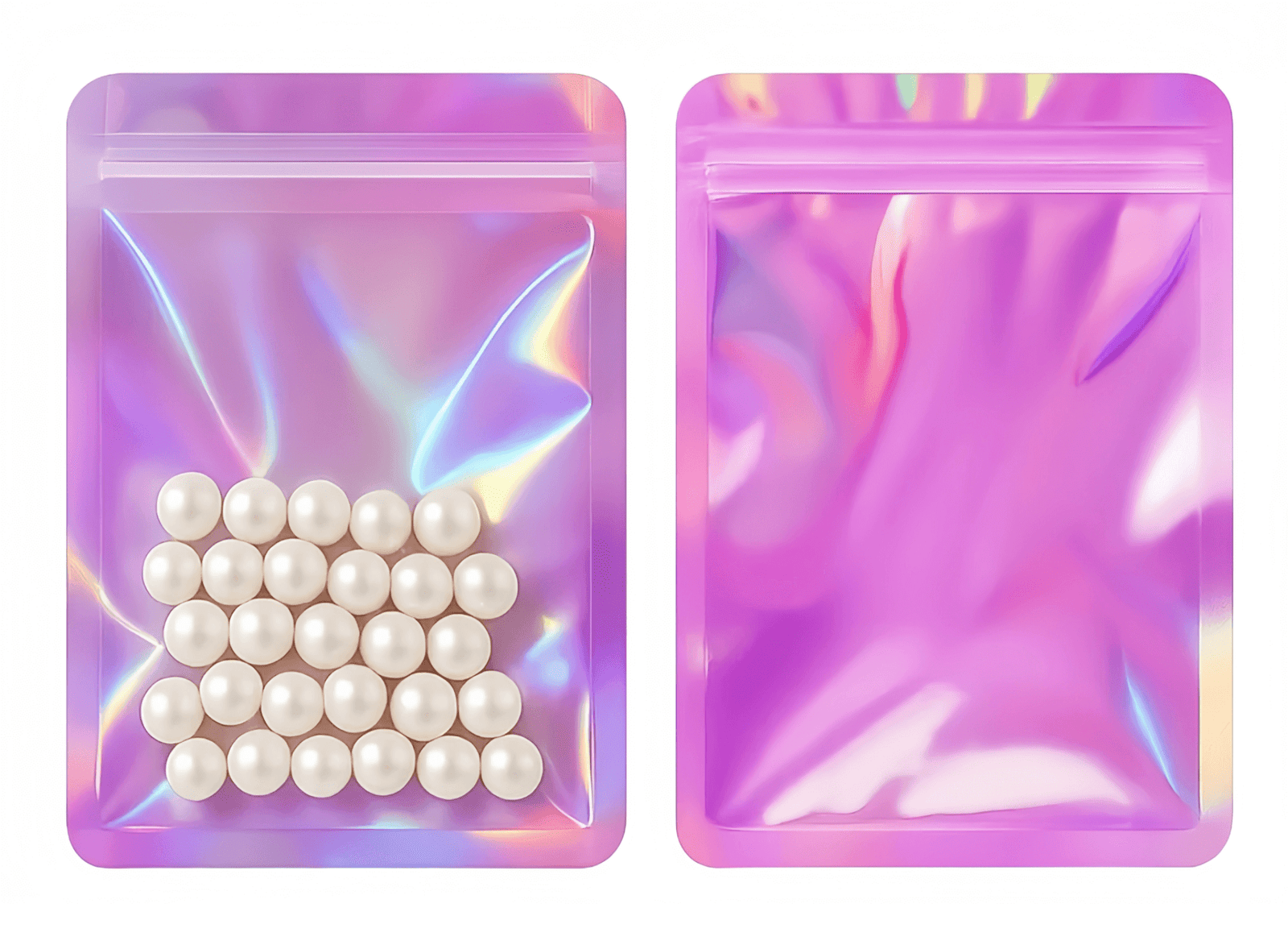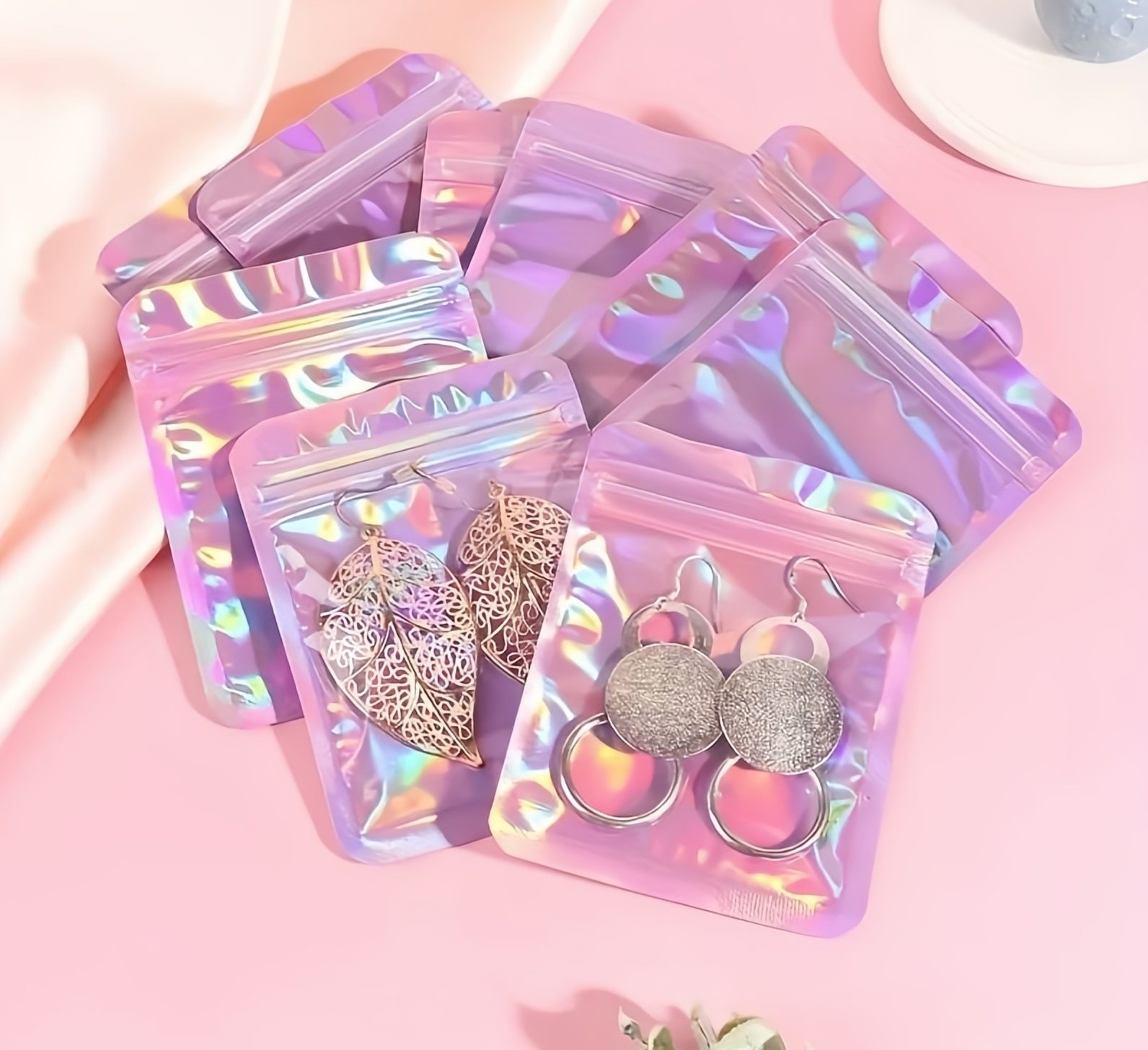 Nos sachets zip holographiques roses représentent une solution de conditionnement à la fois pratique, durable et esthétique.