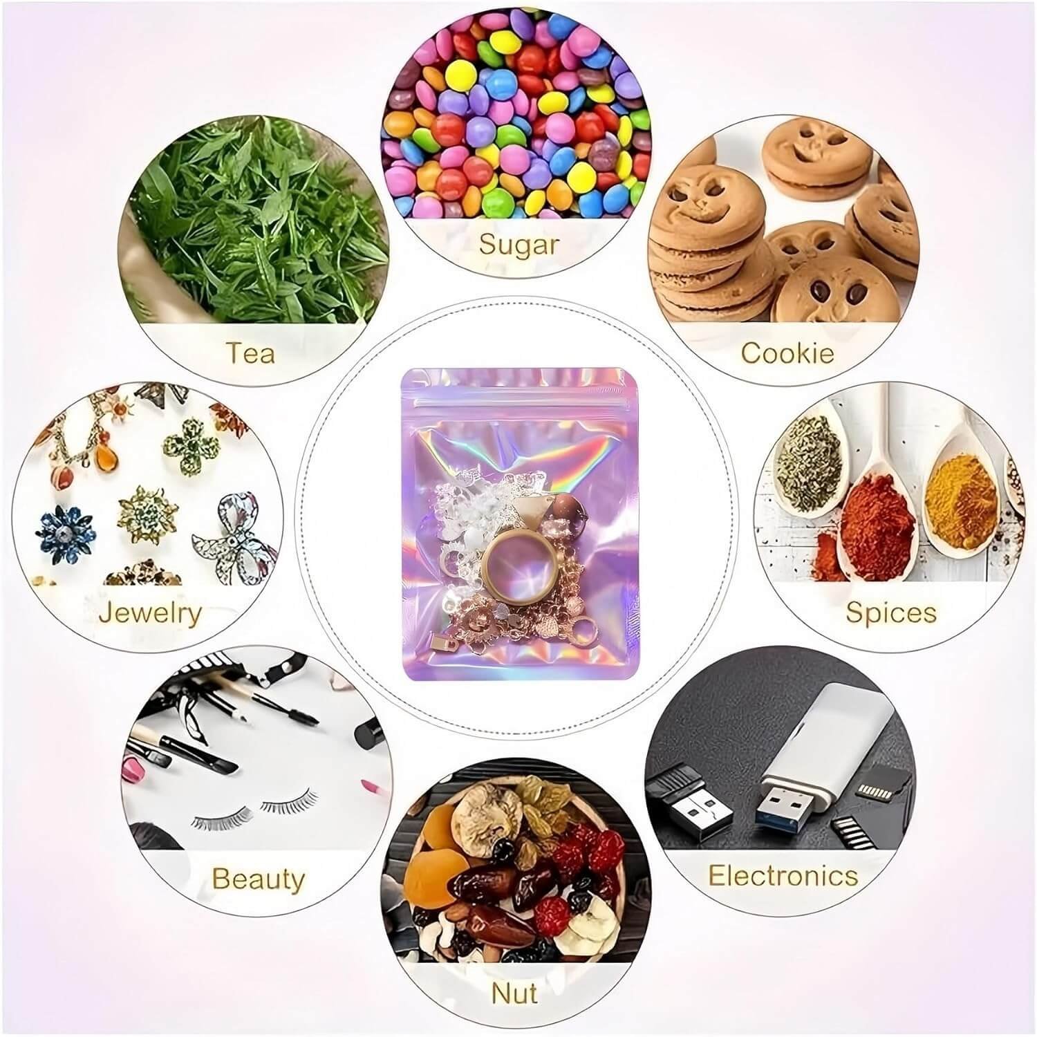 Ces sachets zip réutilisables sont très pratiques. Vous pouvez les utiliser pour conserver du café, du thé, des bonbons, des épices et des échantillons. Ils conviennent aussi aux fruits secs, céréales et croquettes. De plus, ils sont utiles pour stocker des bijoux, accessoires, ou coques de téléphone. Enfin, ils permettent d’organiser des échantillons, produits de beauté ou objets de voyage.